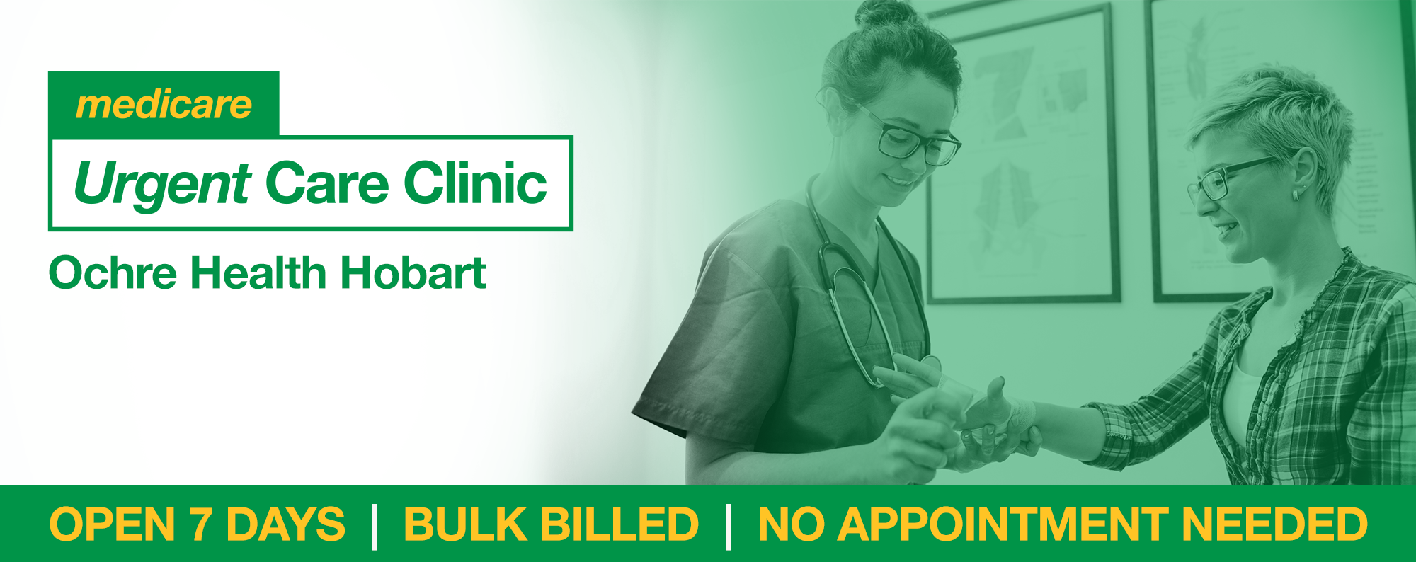 Ochre Health operates a Medicare Urgent Care Clinic (UCC) open 8am to 5pm 7 days a week. Please note, if we reach our capacity earlier than 5pm, non urgent patients will be directed elsewhere.